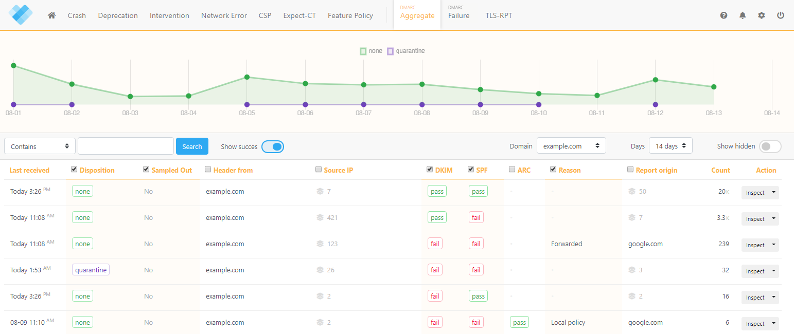 URIports offers a broader suite of reporting beyond just DMARC, including Content Security Policy (CSP), Network Error Logging (NEL), and SMTP TLS-RPT. This multi-protocol approach is a strong point, providing a more holistic view of your web and email security posture. Its advanced DMARC explanation tool is also a handy feature.